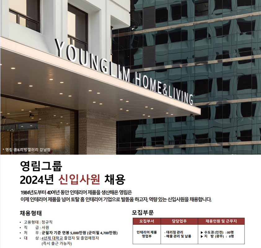 [영림그룹] 2024년 신입사원(영업관리,지방영업직) 추천 채용