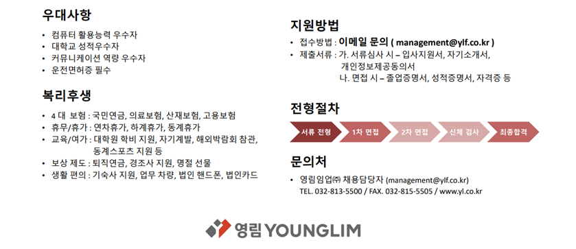 - 운전면허 필수(1종,2종 가능), 커뮤니케이션 역량 우수자, 성적우수자