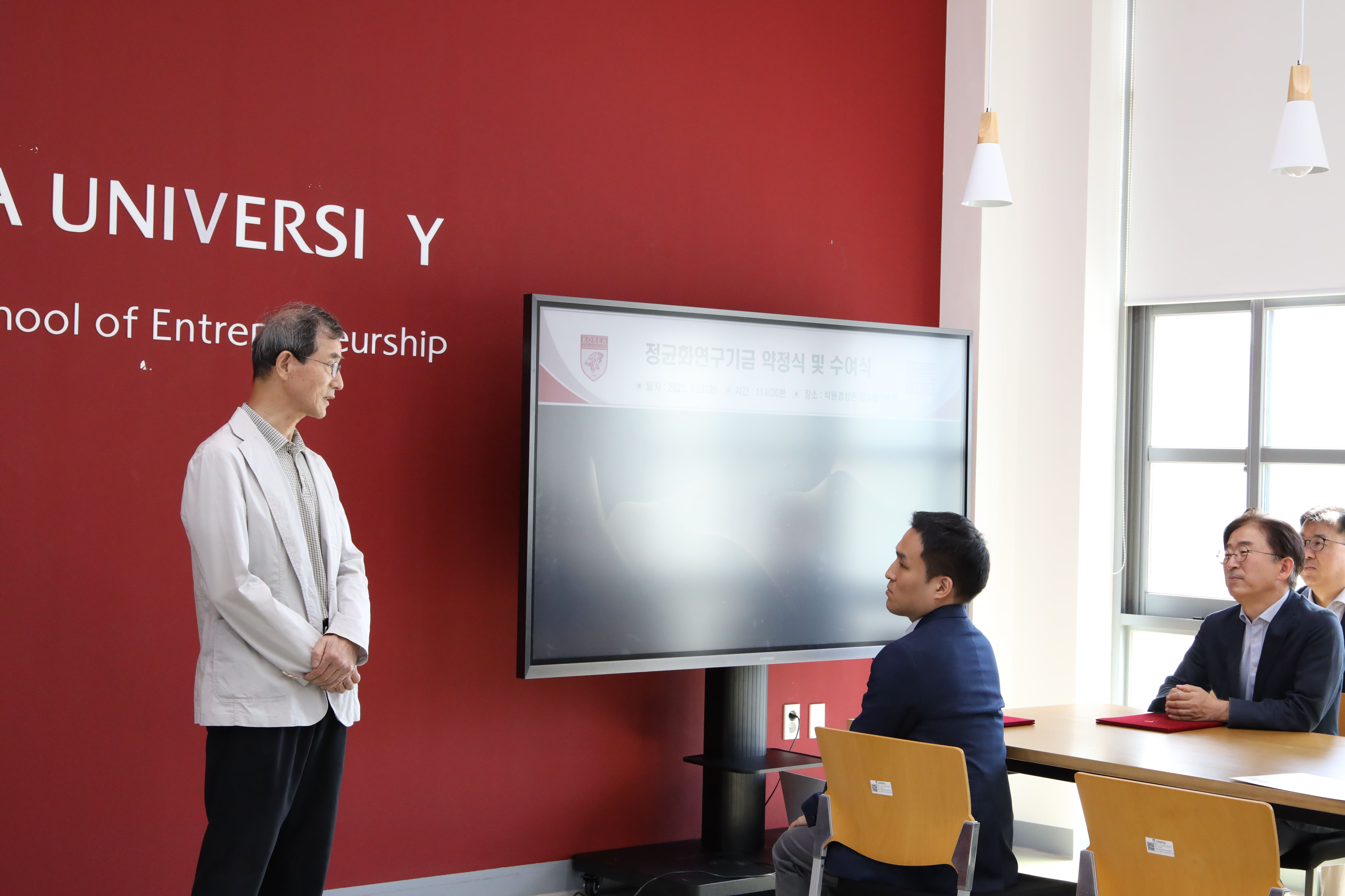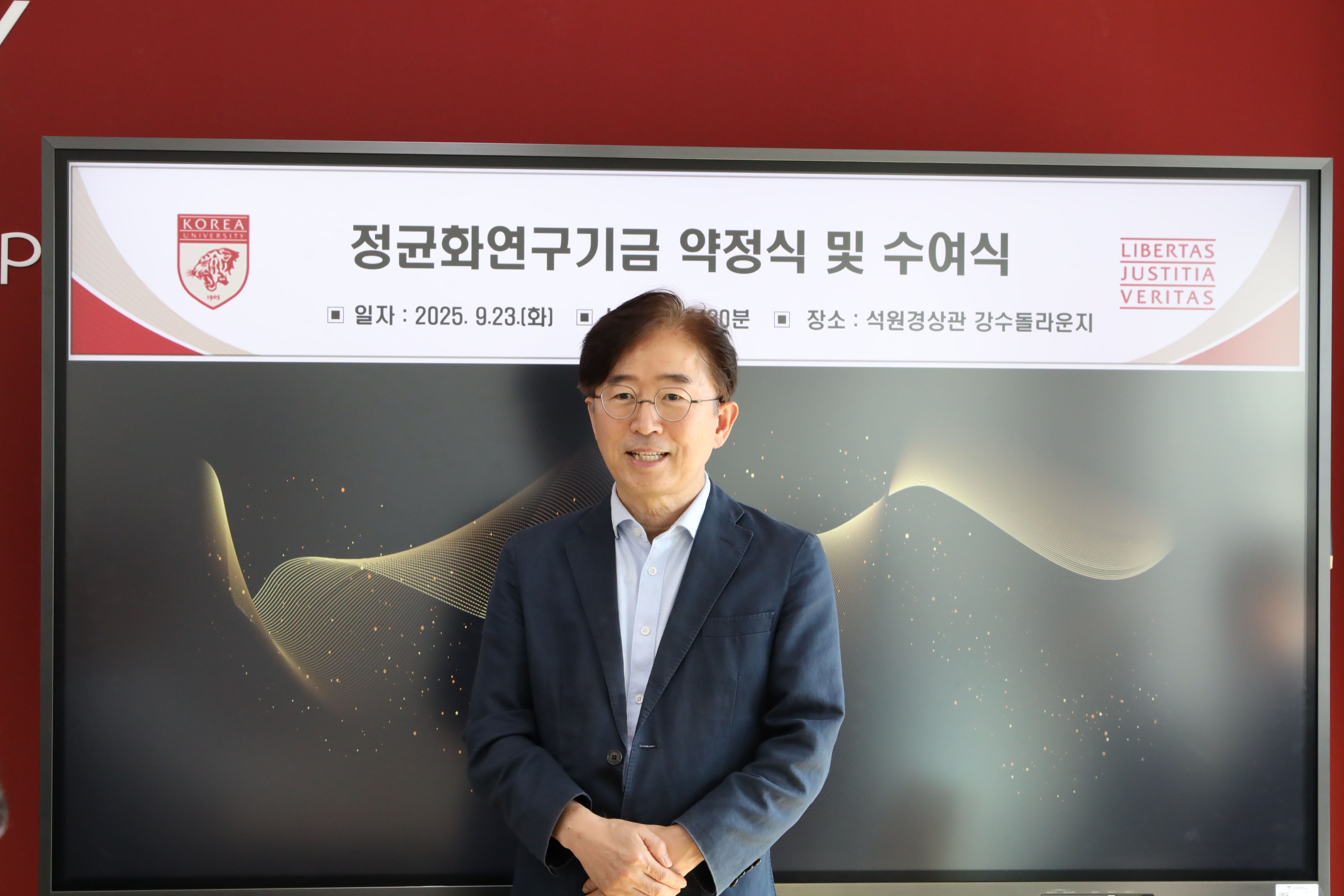 고려대학교 세종캠퍼스(부총장 양지운)가 지난 23일, 석원경상관 105호 강수돌라운지에서 정균화 연구기금 약정식 및 수여식을 진행했다.