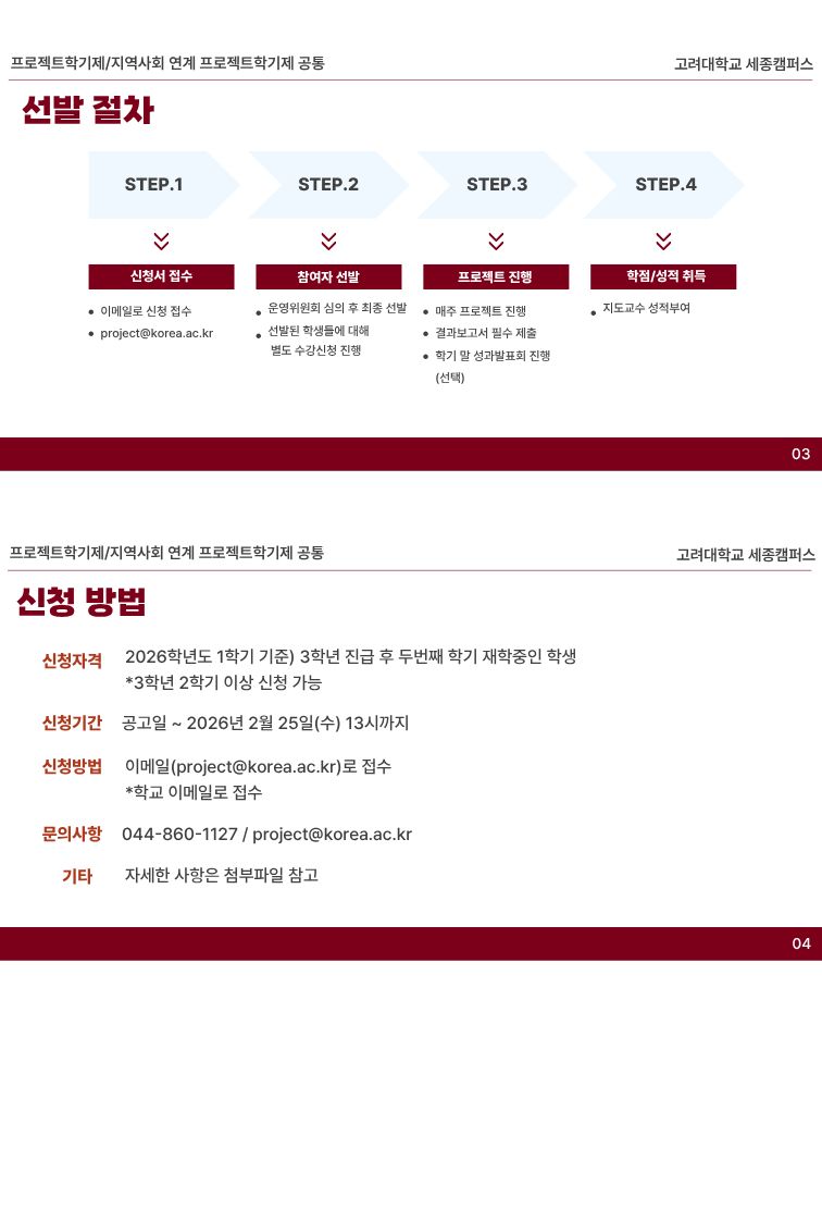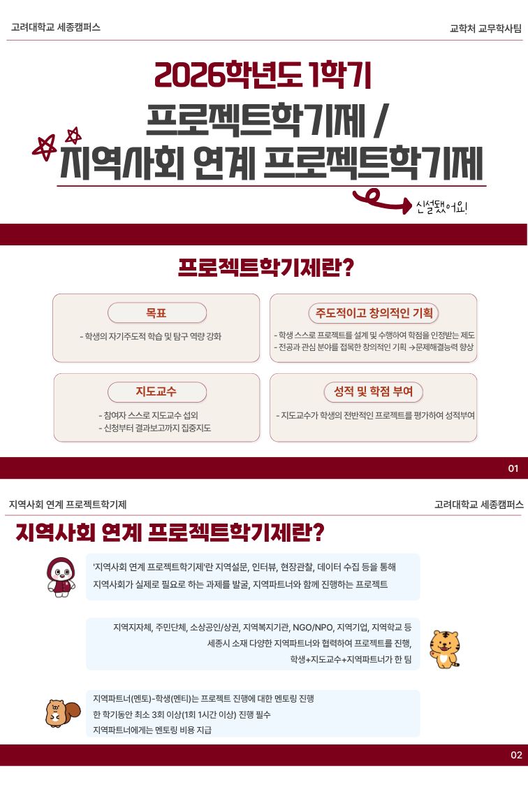 2026-1학기 프로젝트학기제 및 지역사회 연계 프로젝트학기제 모집 안내드립니다.