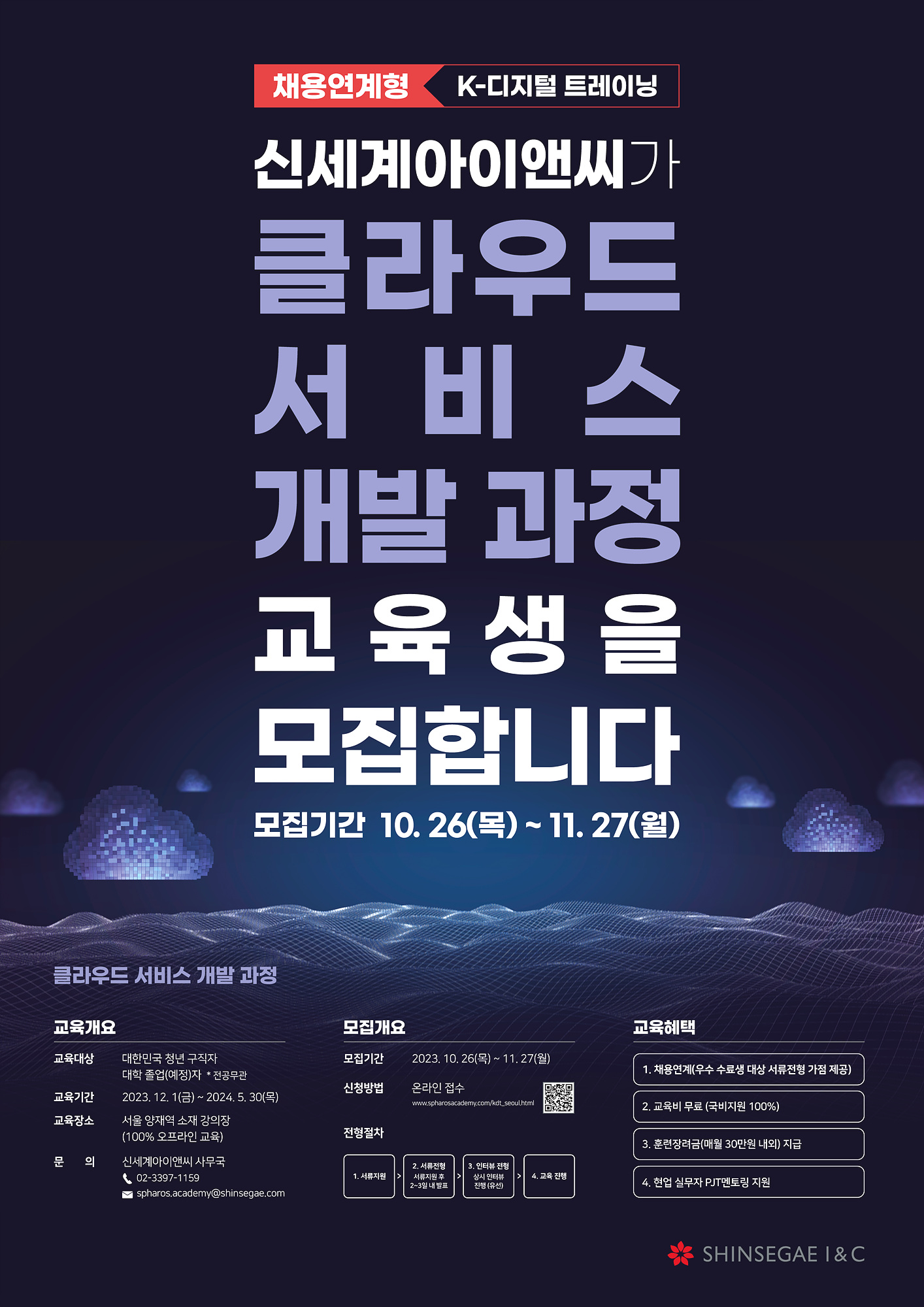 [신세계아이앤씨] 채용연계형 SW개발자 양성 교육과정(전공무관) (~11/27)