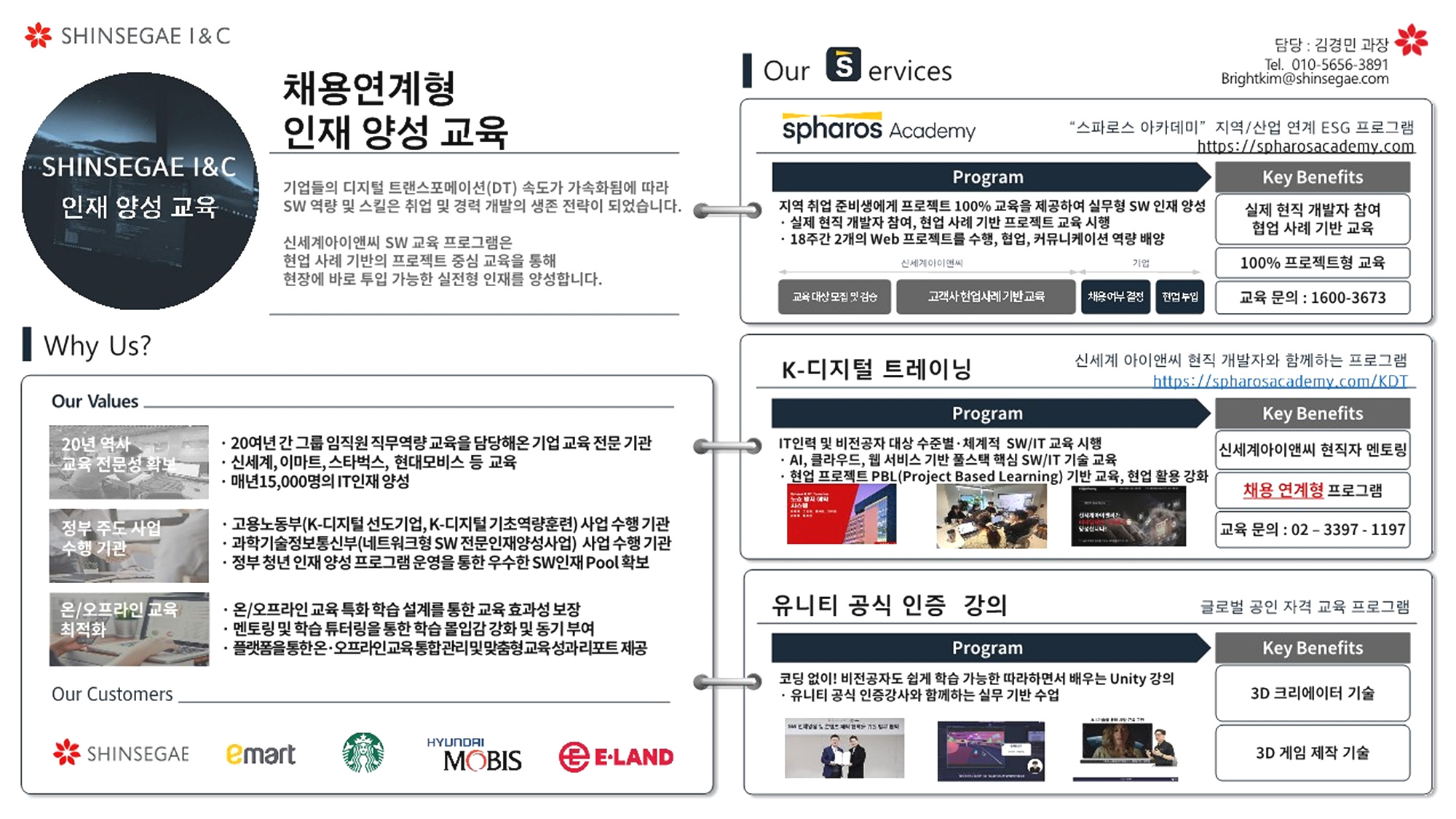 신세계아이앤씨는 청년들의 SW 역량 강화를 위한 실무형 SW 인재양성 교육들을 운영하고 있으며,